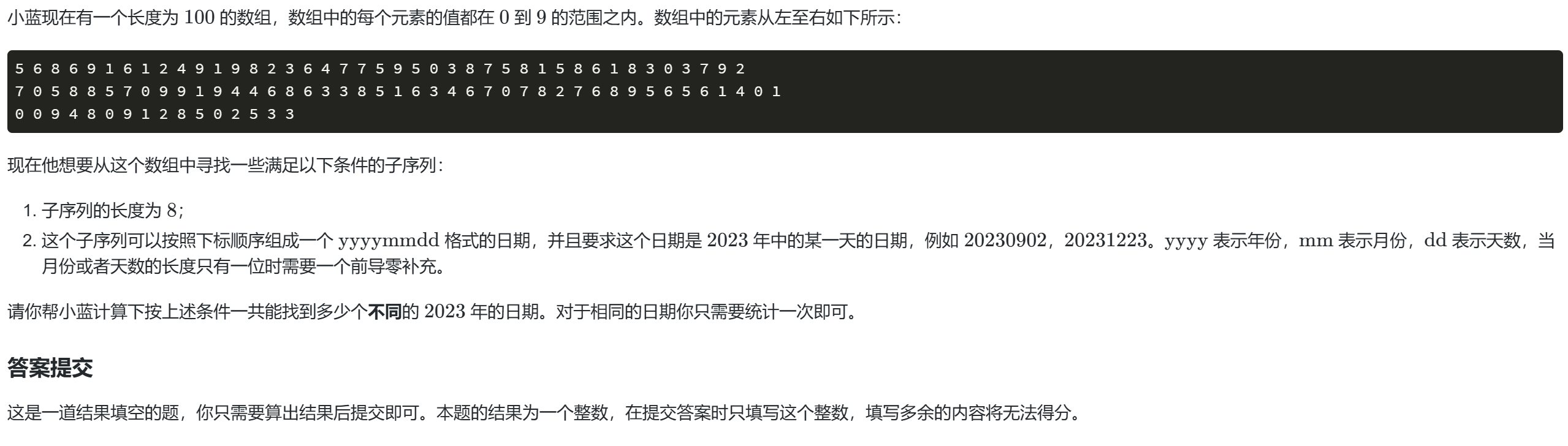 while d1 <= d2: date = d1.strftime("%Y%m%d") num = 0 for i in range(len(str1)): if num == 8: cnt+=1 break if str1[i] == int(date[num]): num+=1 print(num) d1 += timedelta(days=1) print(cnt)